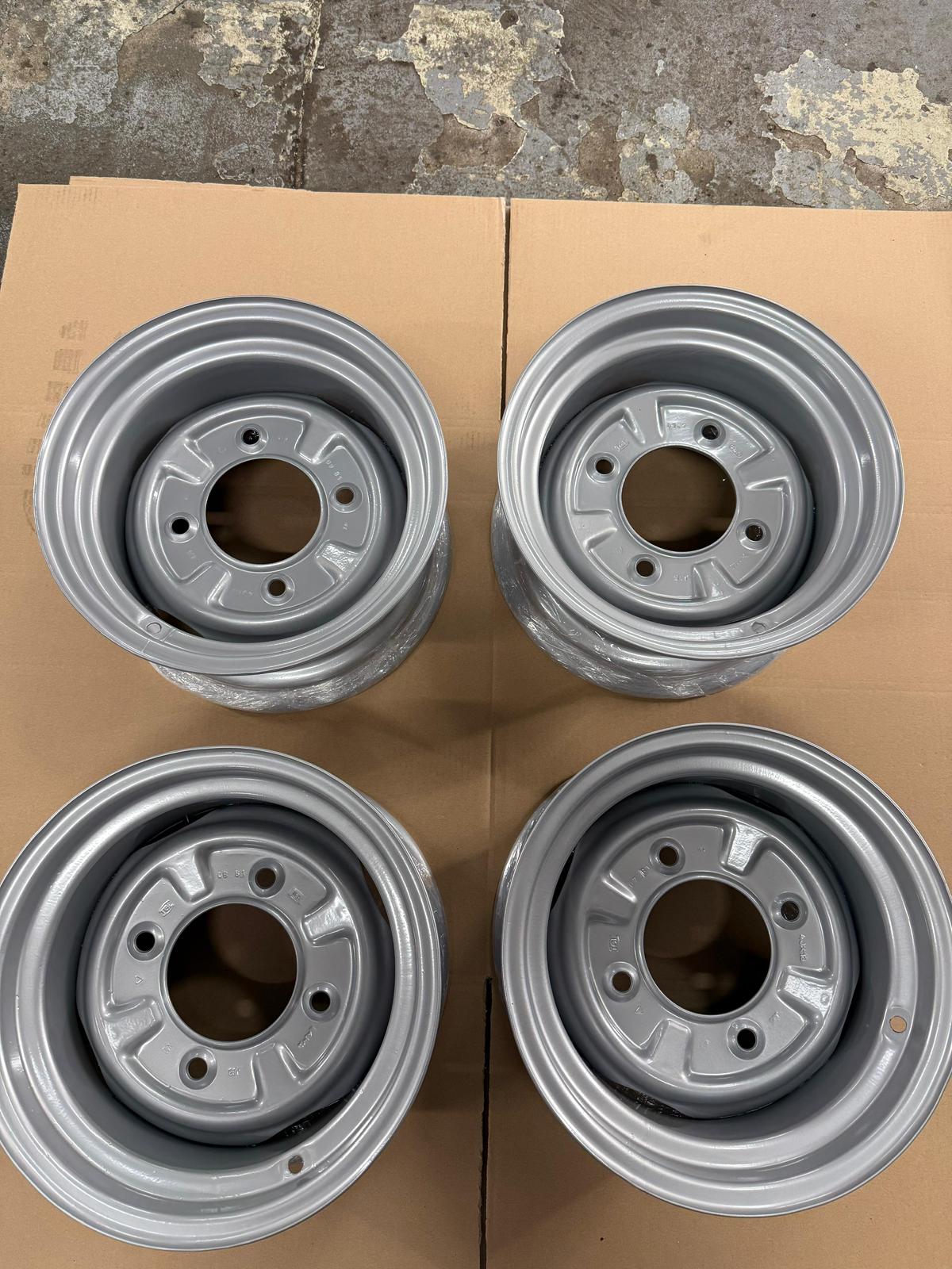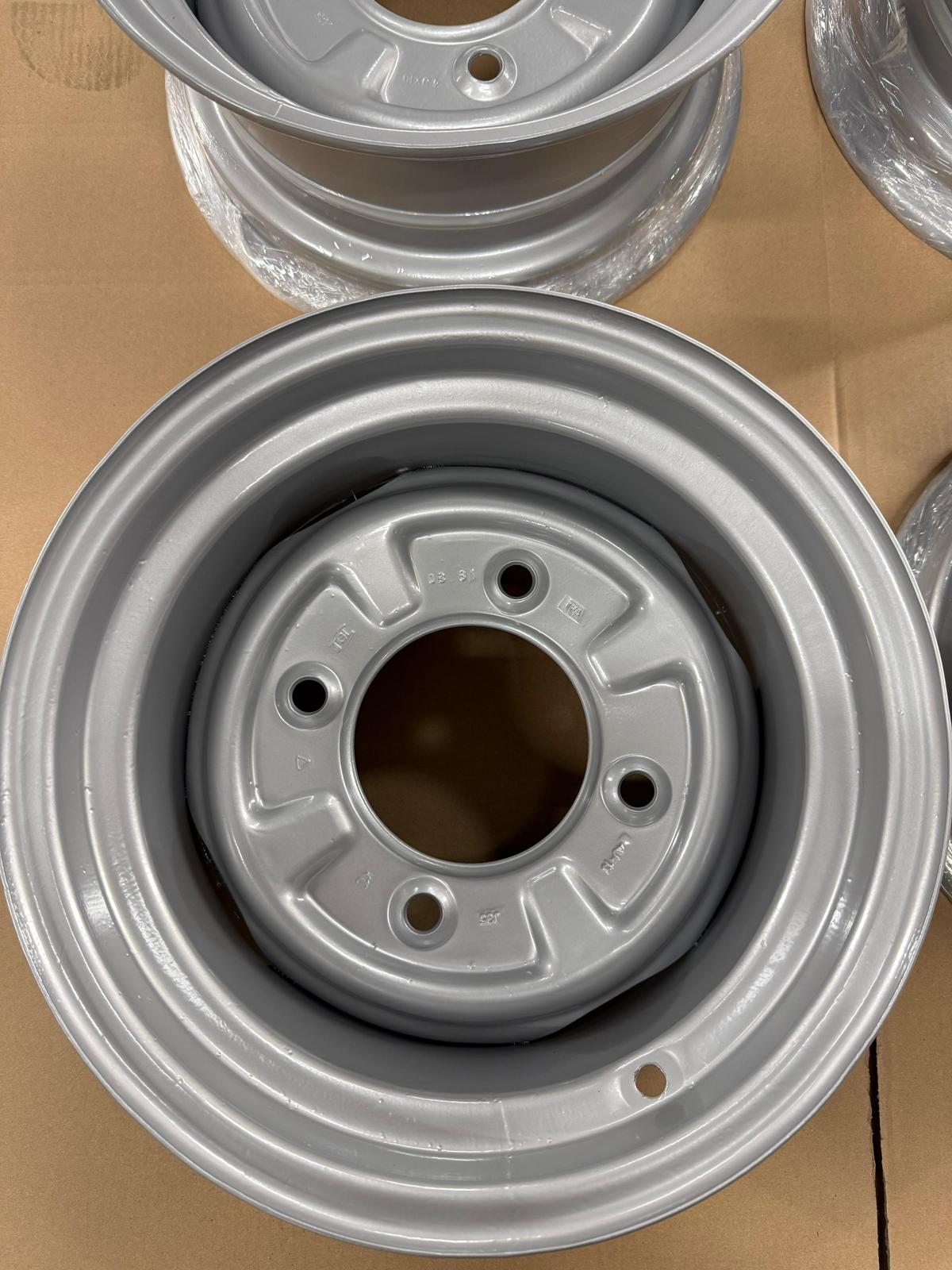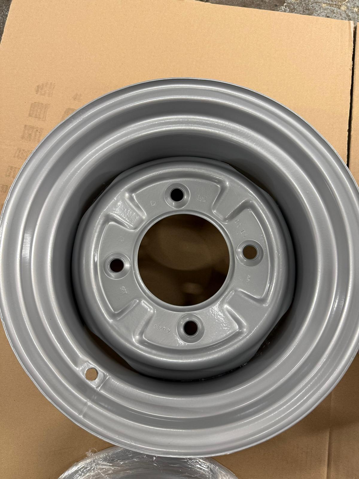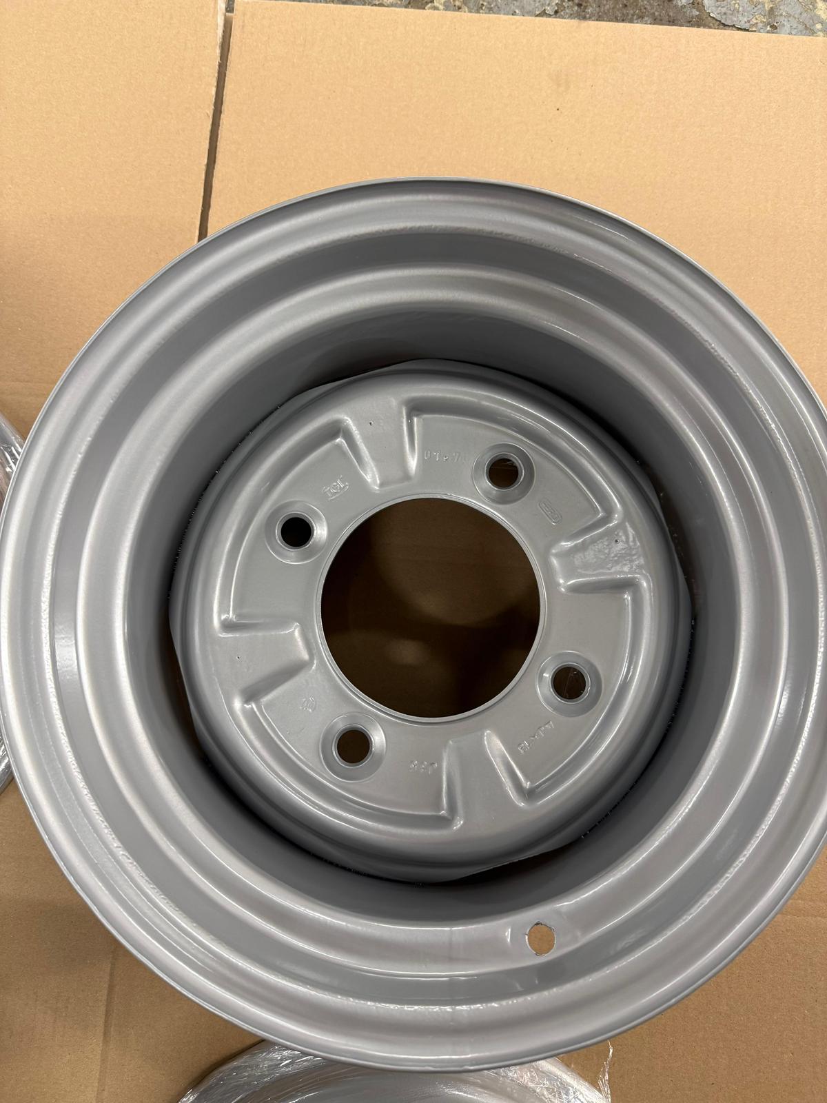 4 wunderschön umgearbeitete Originalfelgen (OHNE Aufnahme für Radkappe / Lochkreis 4×160) für Wartburg oder Trabant in 6,5×13″. Die Einpresstiefe ist schwer zu ermitteln, denke aber einstellig 😀 Beim Trabant passt dieser Satz ohne größere Anpassungen im Radhaus. Maximal einen “Mü” die Radhauskante schneiden. Bei originalhöhe und bis TF120 ohne Anpassungen fahrbar. Beim Wartburg sollten die gänzlich ohne Probleme passen. Ich empfehle für Trabant einen 175/50 R15 Reifen (gerne auf Anfrage als Komplettrad) aufzuziehen.