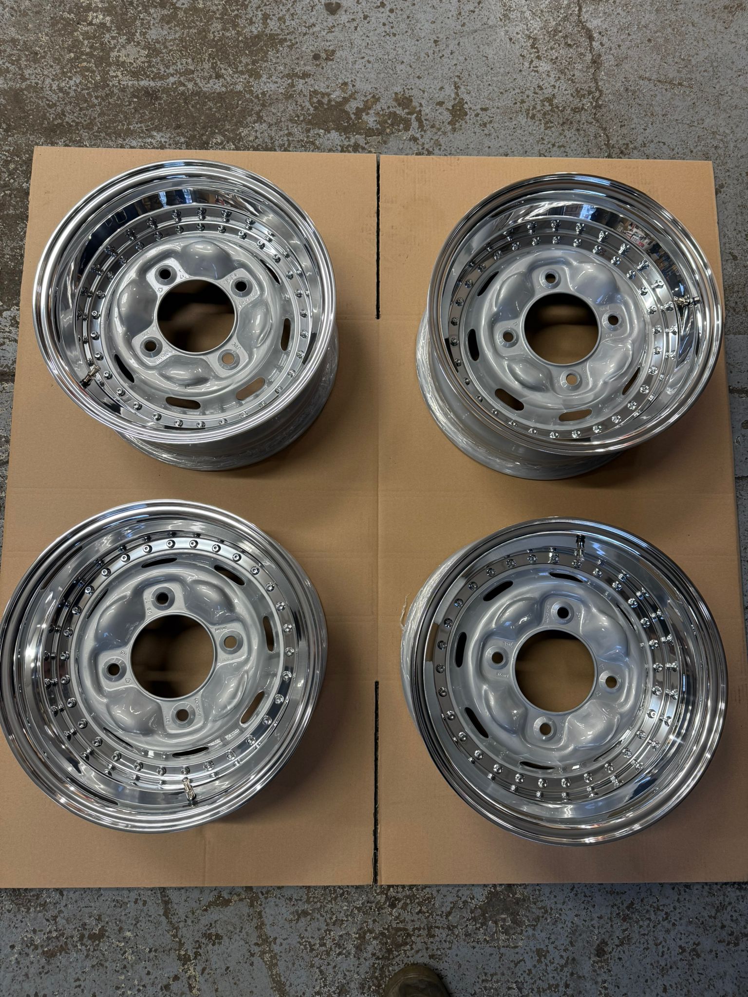 4 wunderschön umgearbeitete Originalfelgen (MIT Aufnahme für Radkappe / Lochkreis 4×160) für Wartburg oder Trabant in 6,5×15″. Die Einpresstiefe ist schwer zu ermitteln, denke aber einstellig 😀 Beim Trabant passt dieser Satz ohne größere Anpassungen im Radhaus. Maximal einen “Mü” die Radhauskante schneiden. Bei originalhöhe und bis TF120 ohne Anpassungen fahrbar. Beim Wartburg sollten die gänzlich ohne Probleme passen. Ich empfehle für Trabant einen 165/45 R15 Reifen (gerne auf Anfrage als Komplettrad) aufzuziehen.