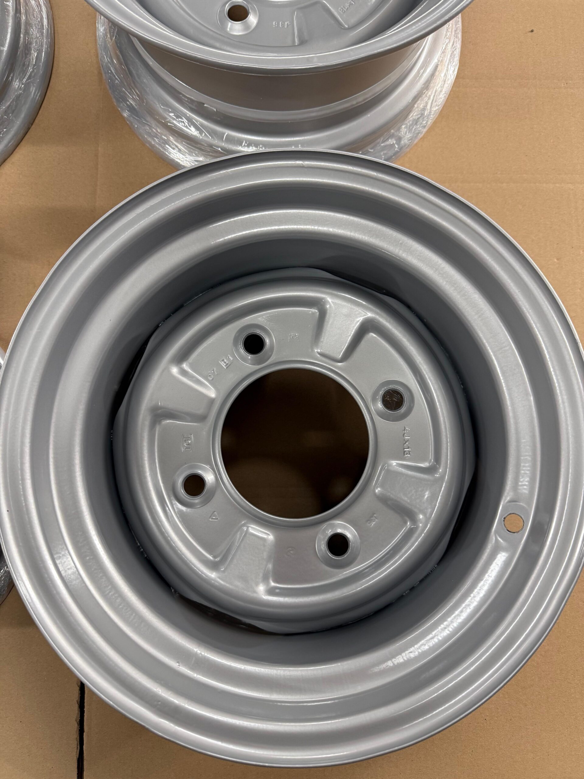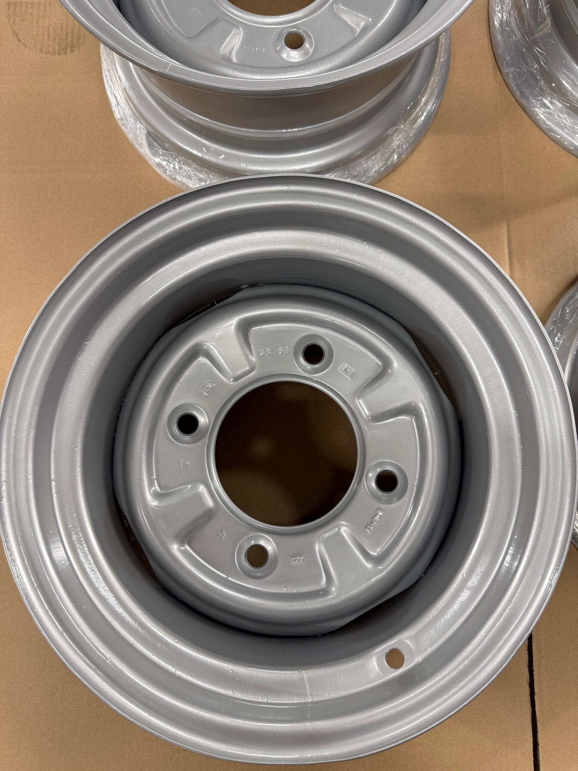 4 wunderschön umgearbeitete Originalfelgen (OHNE Aufnahme für Radkappe / Lochkreis 4×160) für Wartburg oder Trabant in 6×13″. Die Einpresstiefe ist schwer zu ermitteln, denke aber einstellig 😀 Beim Trabant passt dieser Satz ohne größere Anpassungen im Radhaus. Maximal einen “Mü” die Radhauskante schneiden. Bei originalhöhe und bis TF120 ohne Anpassungen fahrbar. Beim Wartburg sollten die gänzlich ohne Probleme passen. Ich empfehle für Trabant einen 175/50 R15 Reifen (gerne auf Anfrage als Komplettrad) aufzuziehen.