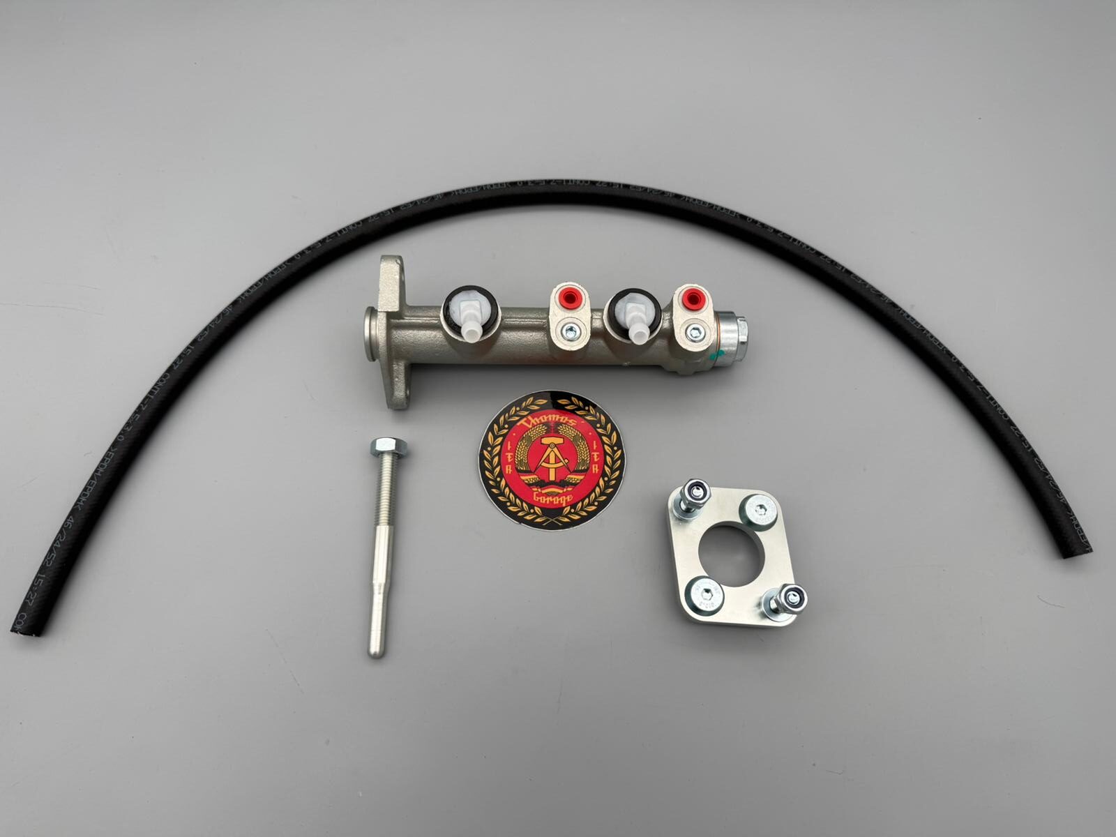 Im Set ist alles dabei was zum Ein- bzw. Umbau benötigt wird! Adapter, sämtliche Schrauben (selbstredend 10.9, verzinkt) und neuer Schläuche zum Ausgleichsbehälter (auch hier Markenware von ATE). Das Teil wird Plug&Play gegen das Altteil getauscht. Die Bremsleitungen usw. müssen 1:1 vom Scheibenbremssystem übernommen werden.