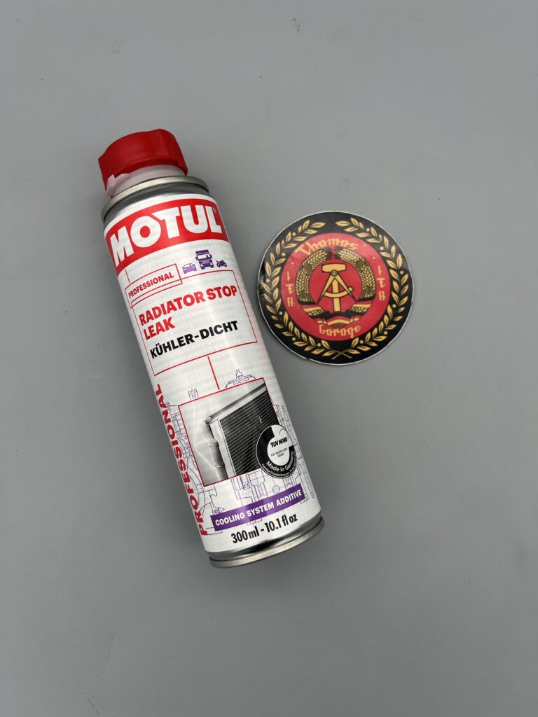 Eine Dose MOTUL RADIATOR STOP LEAK sollte bei Bedarf dem betriebswarmen Kühlmittel zugegeben werden. Heizung in Betrieb nehmen und auf maximale Heizleistung stellen. Betriebswarmen Motor ca. 10 Minuten laufen lassen. Anschließend den Füllstand des Kühlmittels prüfen, ggfs. ergänzen. Bleibt der Füllstand konstant Sollbereich ist das Kühlsystem abgedichtet.