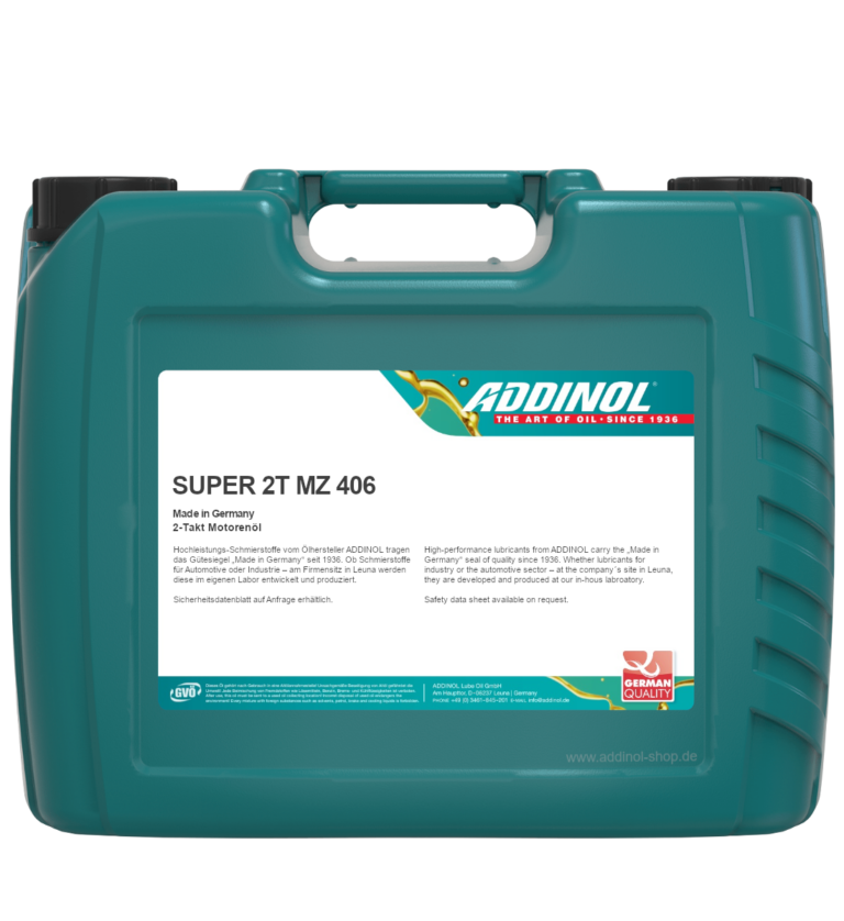 “ADDINOL Super 2T MZ 406 ist ein teilsynthetisches Hochleistungsöl für Zweitaktmotoren. Durch den synthetischen Anteil werden low-smoke Eigenschaften erreicht.
